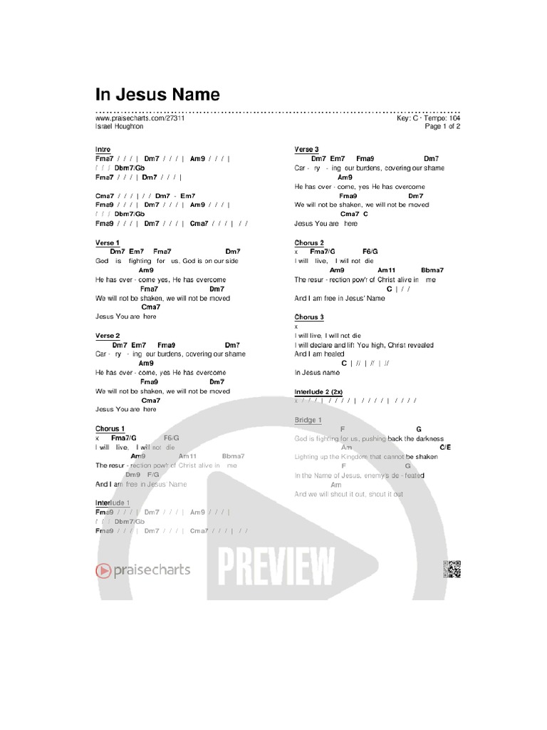 In Jesus Name Chords Pdf Israel Houghton Praisecharts
